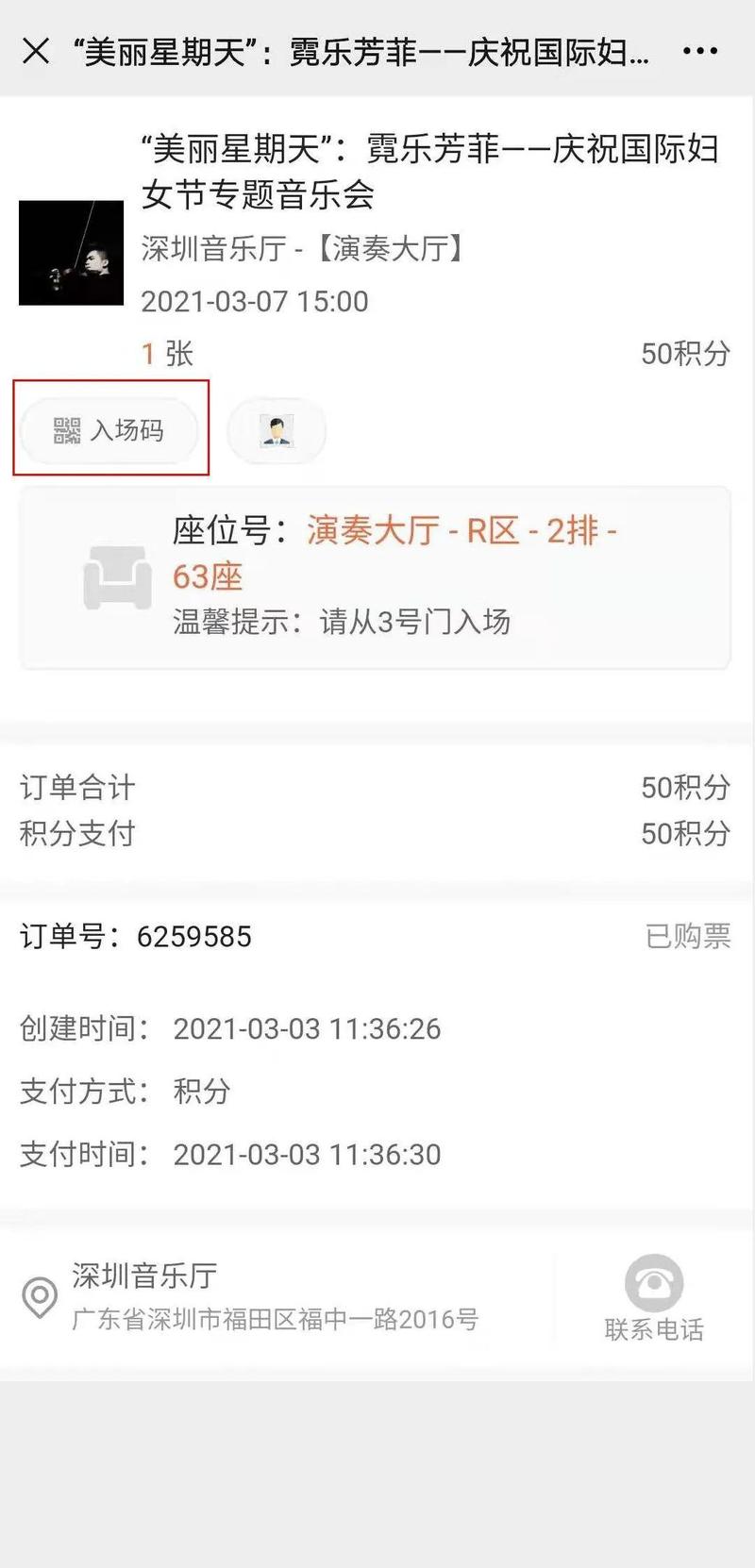 ※门票二维码查看渠道:幸福福田→福田文体通→个人中心→我的订单→找到本场音乐会订单→点击入场码按钮(可提前截图入场二维码方便检票入场)