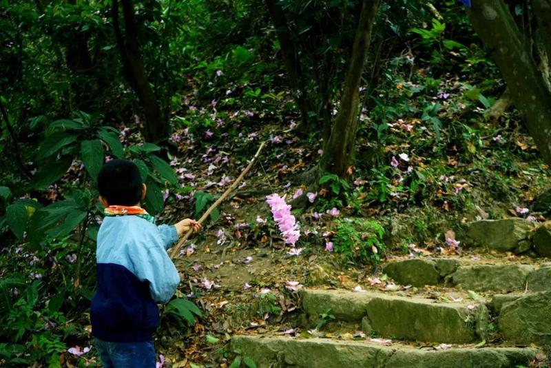 ▲摄于2021年3月梧桐山 by饼干 (小孩子用地上的花瓣串成花灯笼)