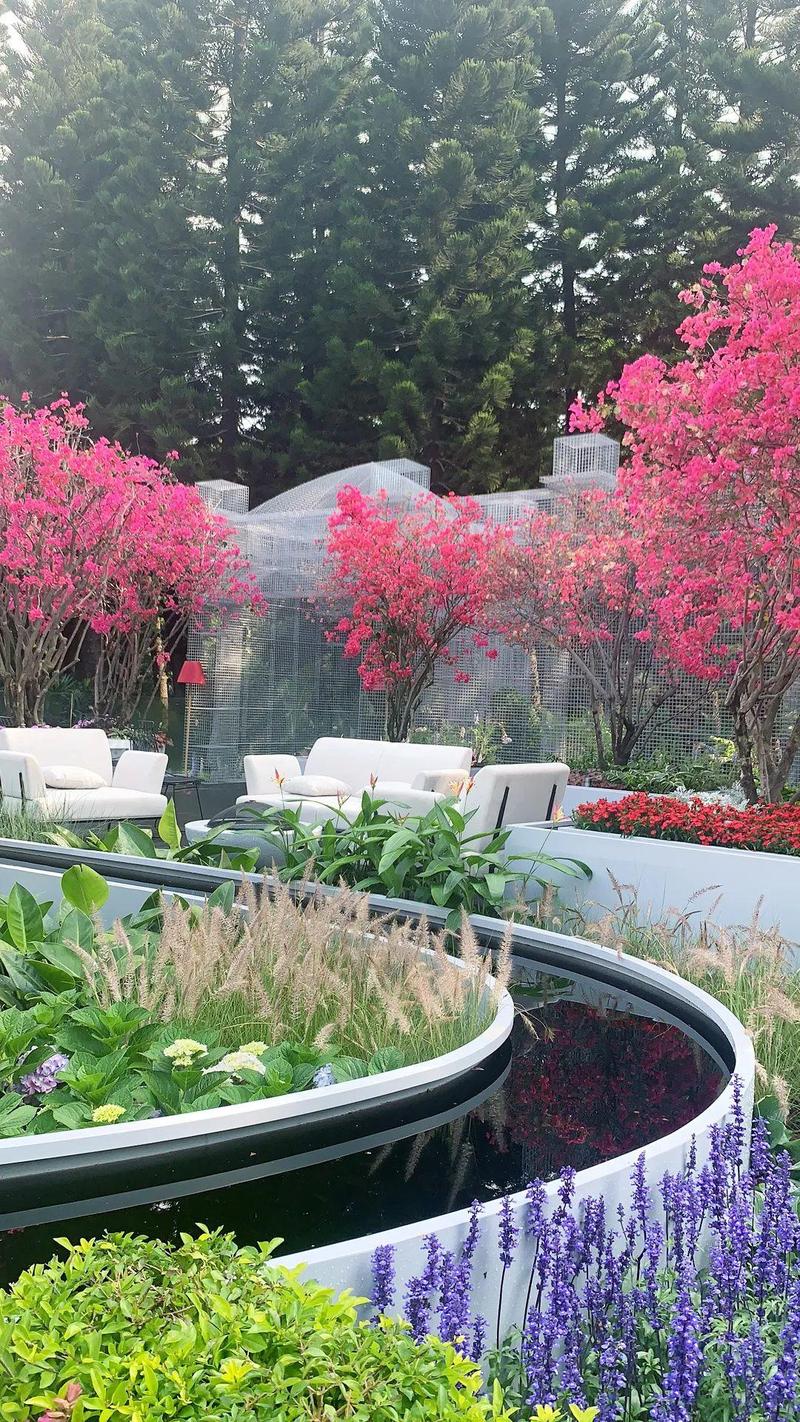 西班牙设计师费尔南多·卡米诺设计的“格拉纳达印象花园”,对称和谐的布局,轻盈的拱门,围绕着水池跳动的水源。在这里,你可以看到西班牙的万般风情,就散落在花草造型里。