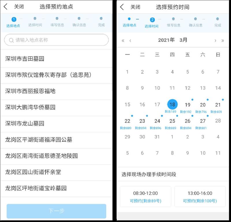 清明期间,现场祭扫实行网上预约。市民可通过“i深圳”APP——“智慧殡葬”模块,选择时段进行预约。为方便老年人等特殊群体,在网上预约的同时也保留了电话预约、现场预约等预约方式,并设立绿色便捷通道。