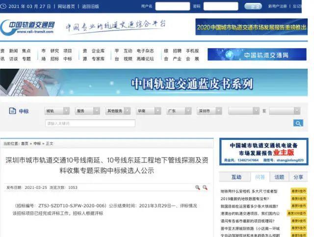 3月25日,中国轨道交通网挂出最新的中标公示——《深圳市城市轨道交通10号线南延、10号线东延工程地下管线探测及资料收集专题采购中标候选人公示》,这标志着地铁10号线南延、东延工程迎来新进展。