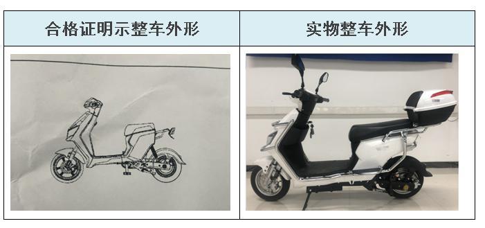 每台获得3C认证的电动自行车都随车配有产品合格证。在合格证右上栏中明示了该车型获得3C认证时的整车简图。那我们消费者在购买时应首先核对该简图与实物间是否有明显差异。如果存在肉眼可见的差异,那这台车就涉嫌经过改装或拼装了,下面给大家个一目了然的图示: