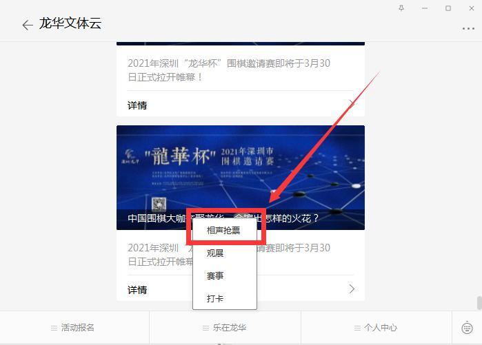 1.抢票方式:在“龙华文体云”菜单栏找到“乐在龙华”→“相声抢票”即可进入抢票。