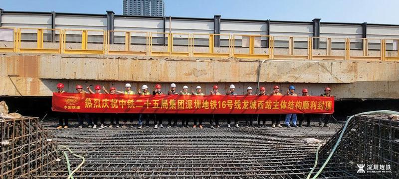 地铁16号线龙城西站主体结构封顶