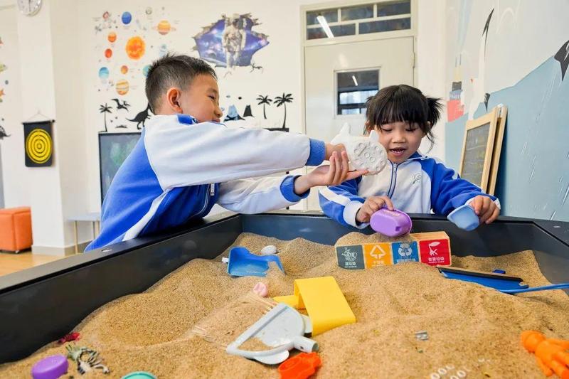 在罗湖的未来学校,老师不会轻易对孩子说“不”,而是从正面引导学生,让他们在一定的边界内做自己。徐沛上课“坐不住”,可以适当活动,但是要保证不影响其他同学上课,思维活跃的她爱做手工,学习成绩优异,很快在学校交到了好朋友。
