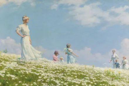 查尔斯·考特尼·柯伦(Charles Courtney Curran,1861.2.3 – 1942.11.9) ,美国著名的画家,他凭借在油画布上描绘出各种不同场合下的女性和鲜花的作品而闻名于世。