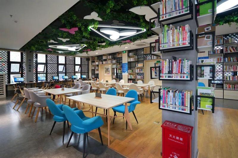馆内的阅览、报刊、青少少儿区域配置完备