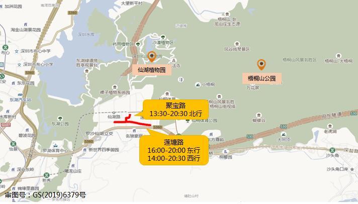 预计仙湖植物园-梧桐山公园片区周边拥堵路段主要分布在聚宝路、莲塘路。具体分布如下:
