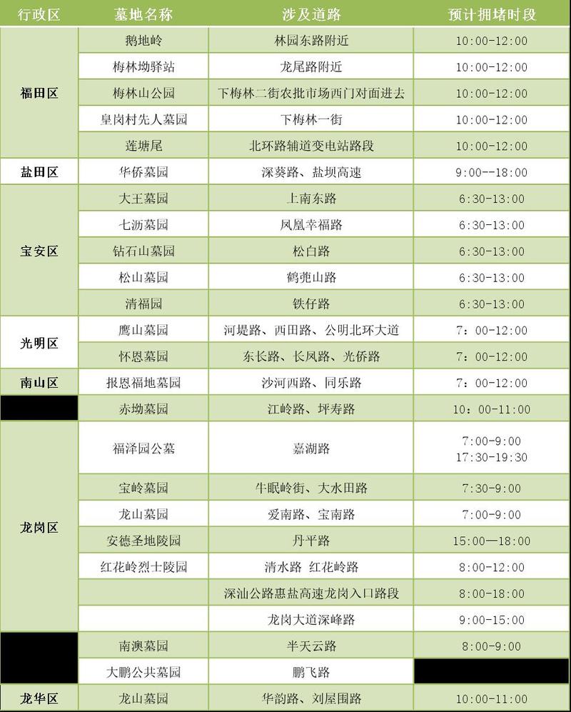 预计墓园周边拥堵路段主要分布在龙岗大道、盐坝高速公路和深葵路。具体分布如下: