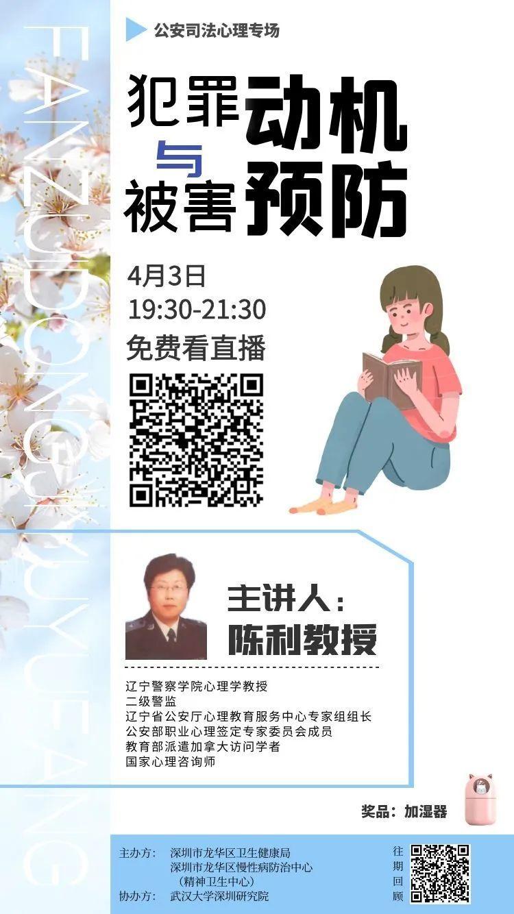 陈利教授,免费公益直播讲座《犯罪动机与被害预防》。