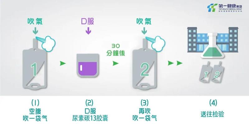 第二次呼气:口服碳13尿素试剂,静坐30分钟,再次吹气收集第二次呼气,检测结果就能出来啦。