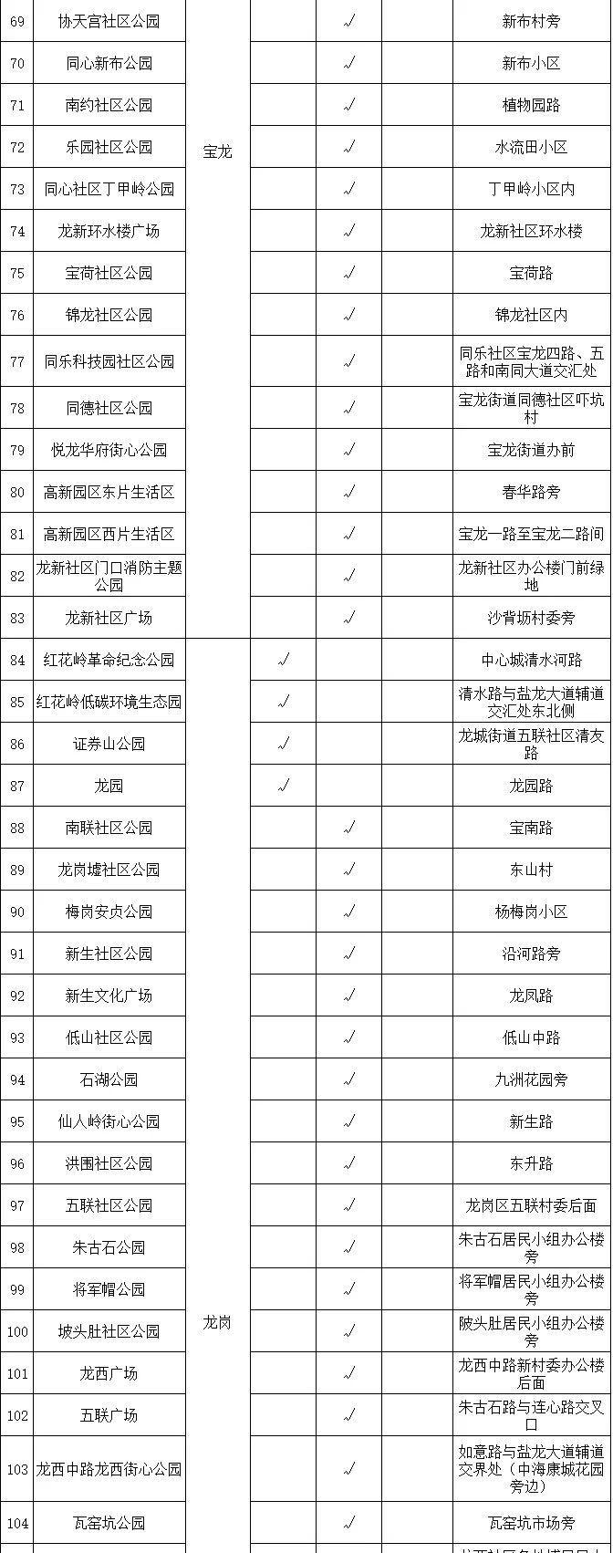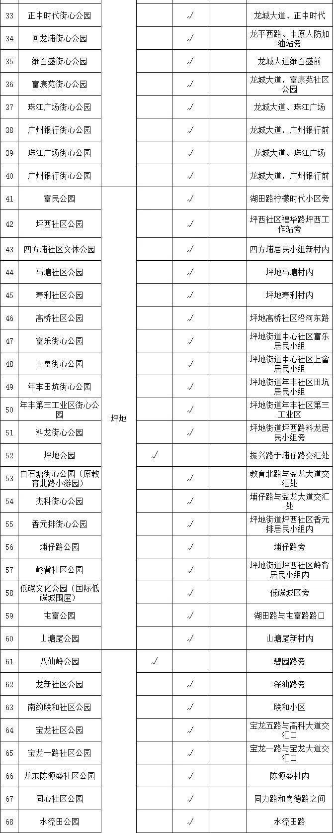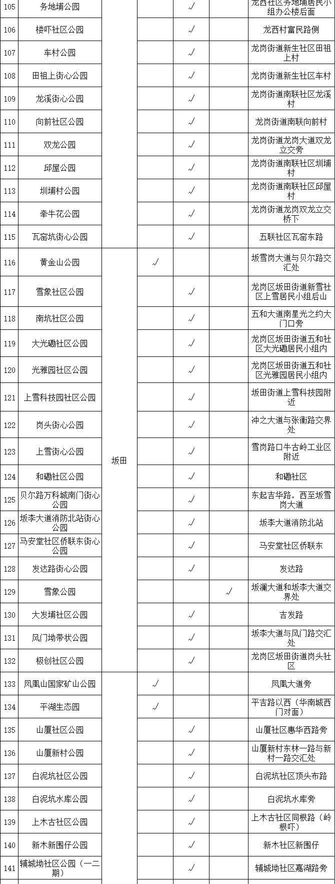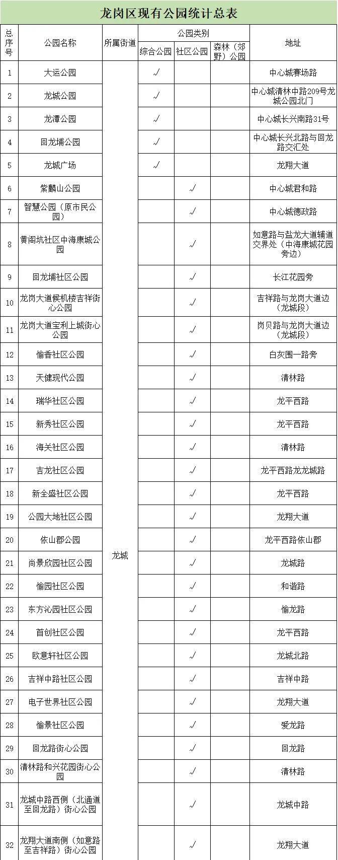 龙岗区现有公园最新名单