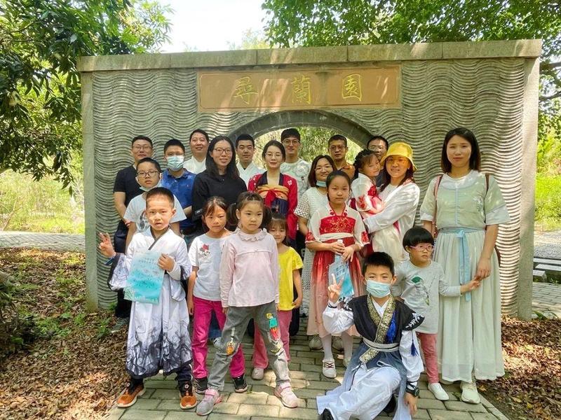携家人着汉服游园赏兰
