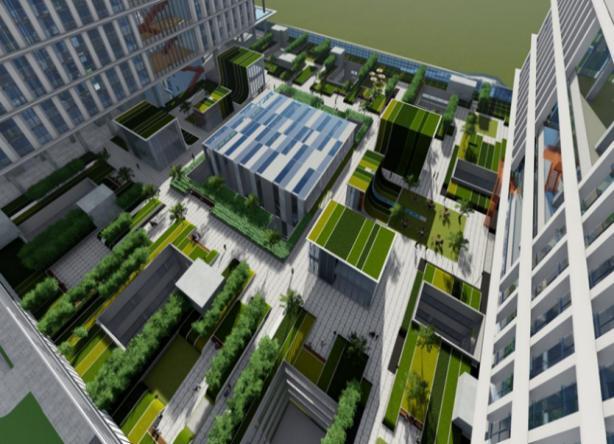 新华医院项目,从人性化和患者的体验感出发,在7层设置约6000平方米的休闲绿化架空区,提升了环境质量。