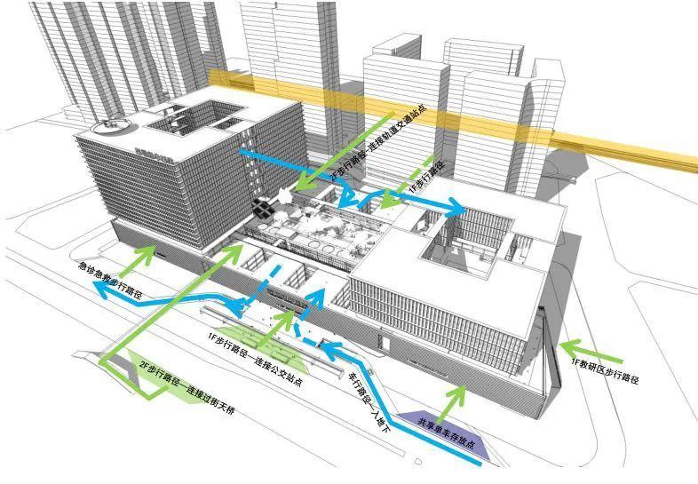 深圳新华医院项目,毗邻地铁4号线红山站,在设计之初就主动与有关部门进行了协商,增加了医院与地铁的联通路线,改善了城市与建筑之间的交通联系,优化了交通流线,契合了城市的发展,构建了融洽的社会环境。