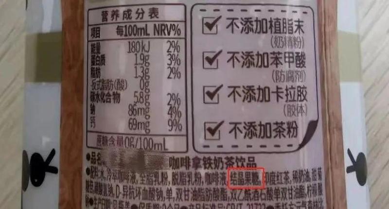 苏打气泡水主打零脂、零糖、零卡,乳茶主打零蔗糖、低脂肪……查看此次产品饮料产品的营养成分表和配料表发现,此次致歉声明中提到的乳茶产品在“升级”前确实添加了结晶果糖。
