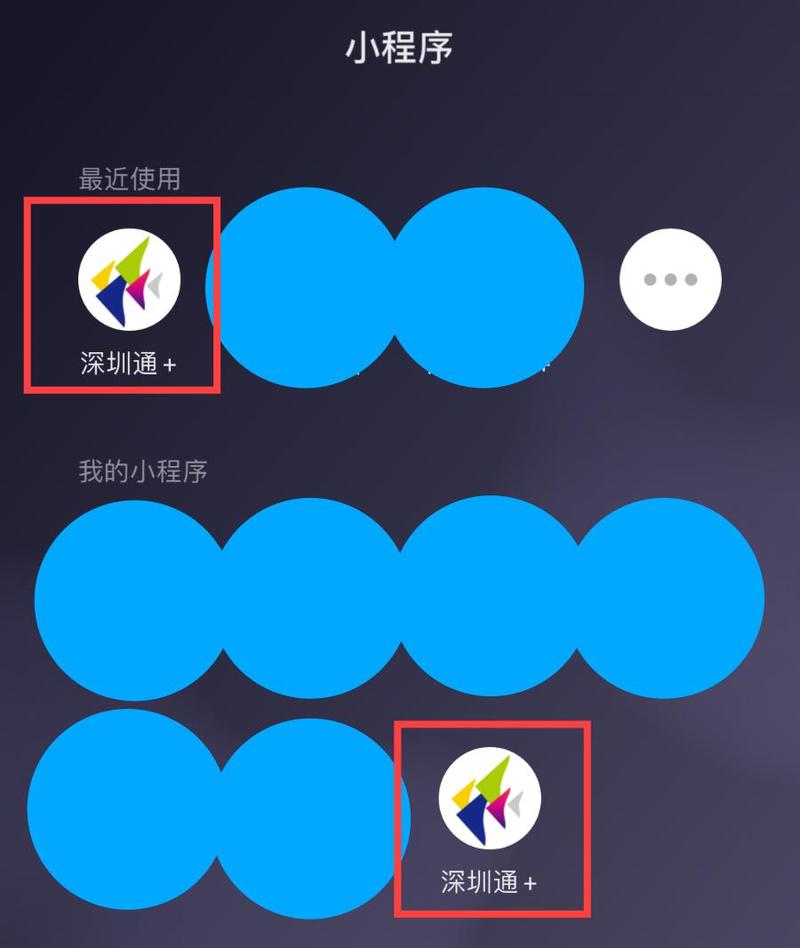 第3步:回到微信首页,下拉屏幕出现小程序列表,长按【最近使用】中的【深圳通+】拖至【我的小程序】中。