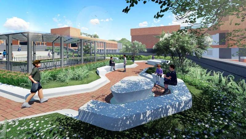 教育无处不在,校园是室内教学空间的延续。俯瞰之下,校园如同一个巨大的弧形海浪,串联起所有的功能空间,将课堂延伸到户外。沉浸体验式的设计,开放式校园景观,互通互联的学习共同体,为师生创造一个天然、绿色的户外课堂,助力打造真正“多位一体”的高标准一流校园!