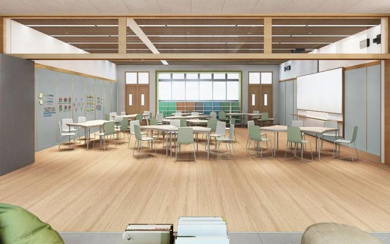 “两房一厅”的创新教学空间,基于团队展示、自主学习、自由讨论、休闲放松的设计,实现空间功能整合后的1+1>2。
