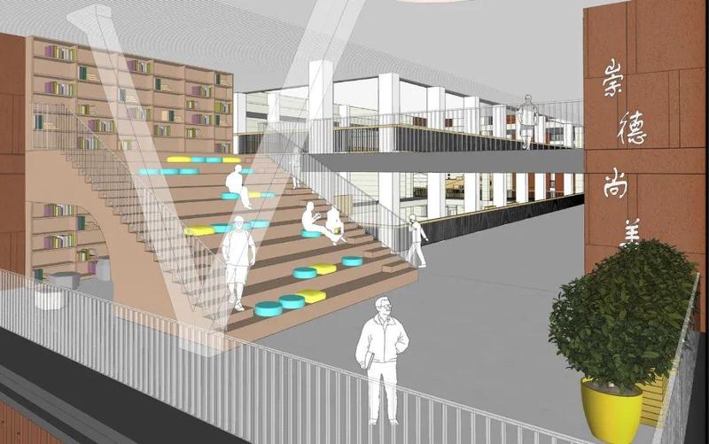 大面积宽阔的连廊,提供了师生共享的休憩空间。师生可以在此休闲、沉思、交流,共同书写动人的成长故事。