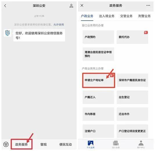 第二步:点击“政务服务”,选择“户政业务”中的“申请立户地址单”业务;