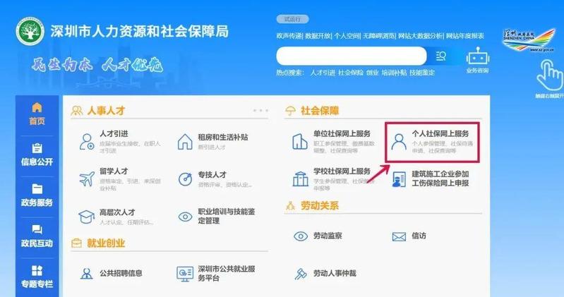 ①登录深圳市人力资源和社会保障局官网个人网上服务系统(https://sipub.sz.gov.cn/hspms/)。