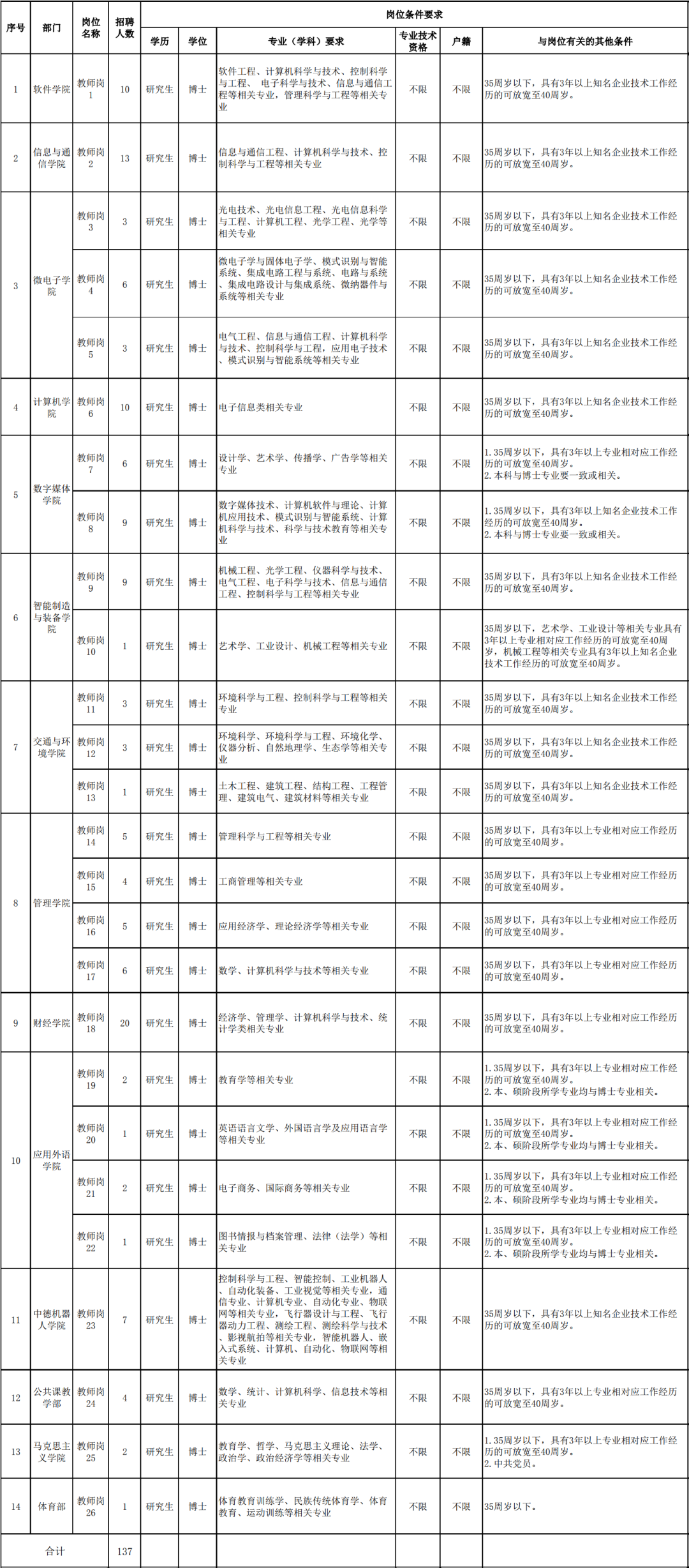 深圳信息职业技术学院面向海内外选聘聘用制教师(博士层次)137名。