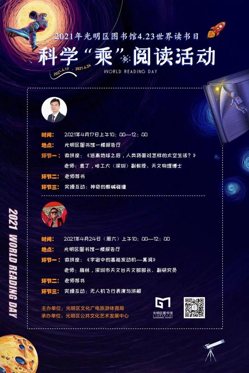 在第26个“4.23世界读书日”到来之际,光明区图书馆将为广大读者奉上科学“乘”系列阅读活动,通过“科学讲座+互动体验”的方式,让市民朋友在家门口就能享受科技与文化的盛宴。