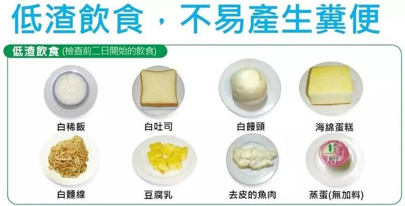 便秘的患者,检查前两天进食半流质饮食(白粥、软面条等),戒食纤维食物(青菜、水果)。检查前一天晩餐进食清淡流质饮食(如稀饭、烂面条、清汤、白糖水,不能喝牛奶、豆浆、浓汤等)。