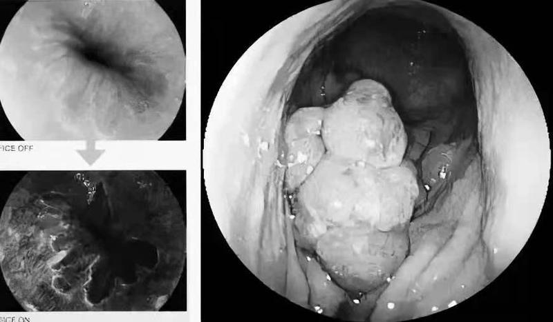 肠镜进入肠道后,能清晰地观察整个肠道內壁小到1-2mm的东西,像小米那么大的也能看得见。