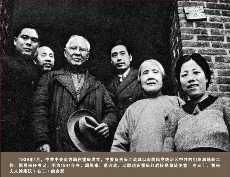 武汉失守后,抗日战争进入相持阶段。国民党当局表现出很大的妥协倒退倾向,党在国民党统治区的工作处于十分艰难的时期。根据党的六届六中全会的决定,1939年1月16日,中共中央南方局在重庆正式成立,周恩来为书记,博古、凯丰、吴克坚、叶剑英、董必武为常委。南方局是抗战时期中共中央领导国民党统治区和部分沦陷区党的工作的机构,在国民党统治区极其复杂的情况下,南方局处于秘密状态,其领导人对外以中共代表或国民参政员的身份出面活动。南方局在周恩来等人领导下,创造性地贯彻执行抗战、团结、进步的方针,通过各种公开的和秘密的渠道,为巩固和扩大抗日民族统一战线开展了卓有成效的工作。