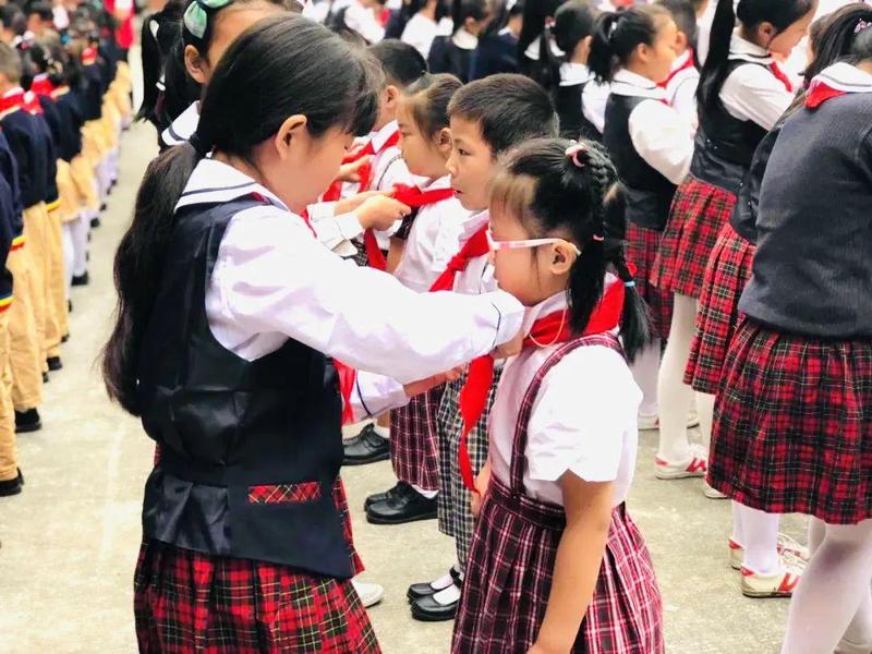 “全童同时入队”时,个个都是“先锋”,体现不出“先锋”的意义,入队的吸引力、神圣感大打折扣。“分批入队”后,按照“推优入队”原则有先后顺序,先入队的起到榜样作用。如此一来,大家对“红领巾”的光荣感和归属感明显增强。目前,上星学校正探索通过集星的方式,由多主体参与,从多维度考核,客观评价学生表现,试行“分批入队”。接下来,还将尝试让少先队员当“考官”,并积极开展少先队主题教育和争章活动,引领学生争当新时代好队员。