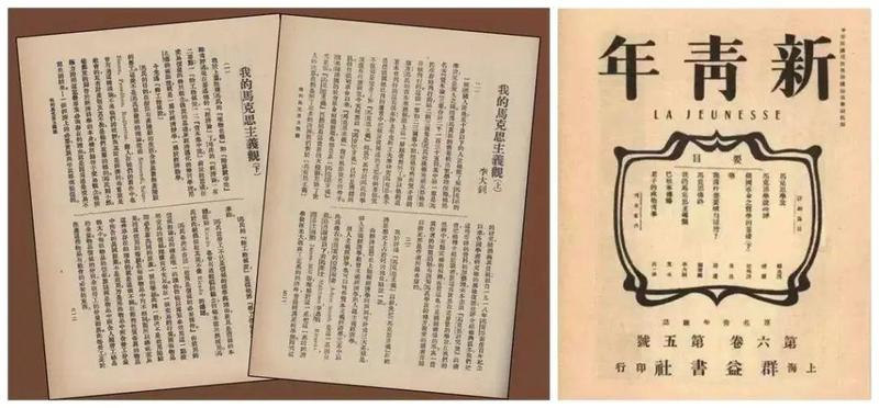 图右为《新青年》第六卷第五号,图左为李大钊《我的马克思主义观》