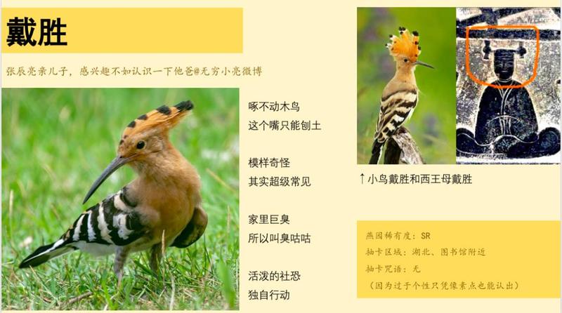 啄木鸟名声在外,人们看到嘴巴长长的鸟,往往以为是啄木鸟。最常被人误解的是戴胜。戴胜嘴巴纤长,翅膀的羽毛黑白相间,头顶着大大的冠,模样夸张。不识鸟的人见到它多半惊奇,殊不知戴胜分布甚广,全国大多地区都有它的身影。