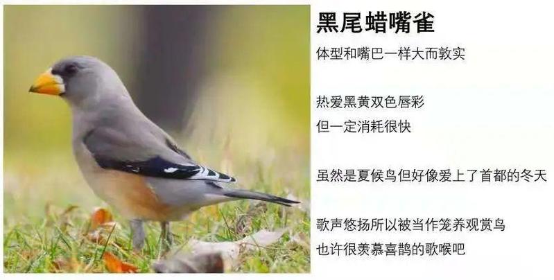 春天的黑尾蜡嘴雀更爱唱歌,声音很大,我第一次听到时,心里只有四个字:悠扬婉转。说是它们的声音,再合适不过。