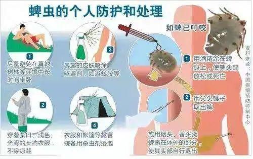 被蜱虫叮咬后切不可切不可切不可捏、拽、用火或者其他东西刺激它,取的过程要特别注意不要把蜱虫的口器留在皮肤里。同时,密切观察14天内有无发热及其他症状,如出现相关症状应迅速就医并告知医生有蜱叮咬史。