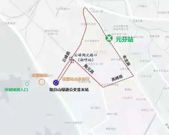停靠站:阳台山绿道公交首末站、云峰陶元路口(招呼站)、光浩工业园、鹊山路口、元芬地铁站、元芬村、天诚家私厂、云峰陶元路口(招呼站)、阳台山绿道公交首末站