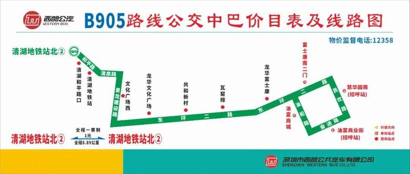 停靠站:清湖北地铁站②、清湖和平路口、清湖地铁站、文化广场西、龙华文化广场、共和新村、瓦窑排、龙华富士康、富士康南二门、慧华园南(招呼站)、油富商业街(招呼站)、油富商城、龙华富士康、瓦窑排、共和新村、龙华文化广场、文化广场西、清湖地铁站、清湖和平路口、清湖北地铁站②