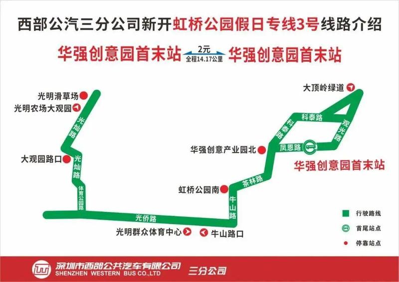 交通运输局协调了3条光明小镇片区的节假日接驳巴士,可以完美衔接片区承载量最大停车场——华强创意产业园停车场及两个6号线地铁口(凤凰城、光明大街地铁站)并串联片区内虹桥公园、大顶岭绿道登山口、华侨城光明欢乐田园、光明农场大观园、光明滑草场、光明文化艺术中心等热门去处。