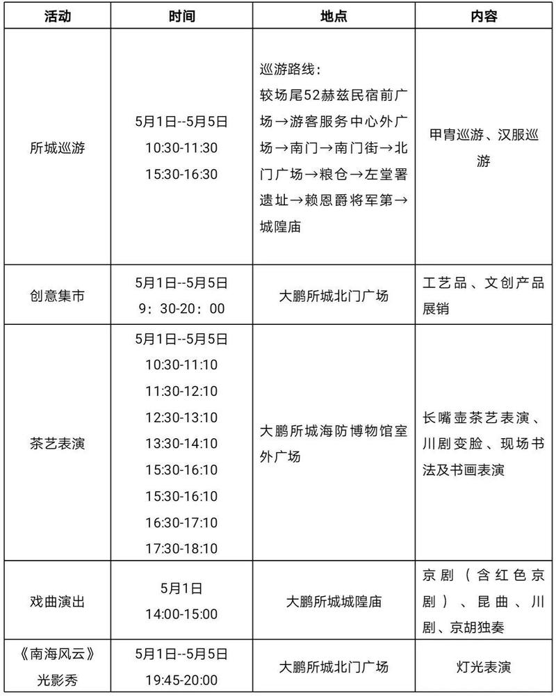 大鹏所城“五一”活动安排表