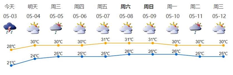 ●今日阴天间多云,有阵雨或雷阵雨,部分时间雨势较大;气温21-28℃;偏东风3级,沿海、高地和海区阵风6-7级;相对湿度65%-95%。