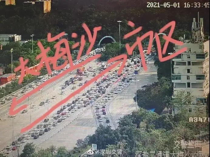 5月2日,据深圳交警消息,从深圳市区前往东部方向的道路持续车多缓行状态,上午9时起路面车流量逐渐增多,在11时出现出行高峰。此外,大梅沙海滨公园、西丽动物园、世界之窗等多个热门景区停车位已经饱和。交警提醒:行车遇拥堵时,请大家及时调整路线,拒绝路怒加塞,否则将严厉查处。