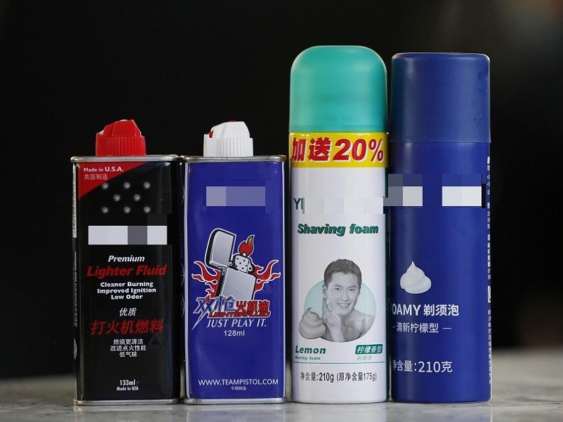 此外,打火机油、剃须泡沫