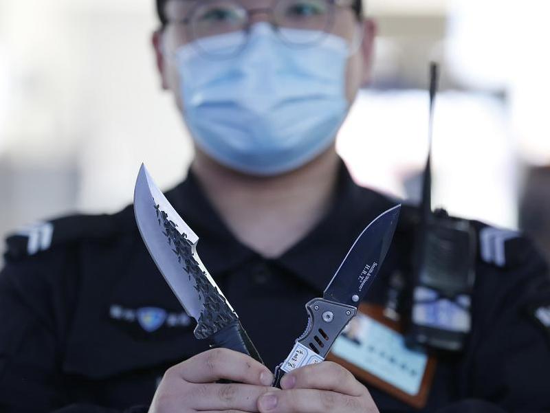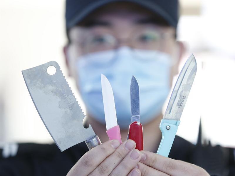 在车站查获的各类刀具