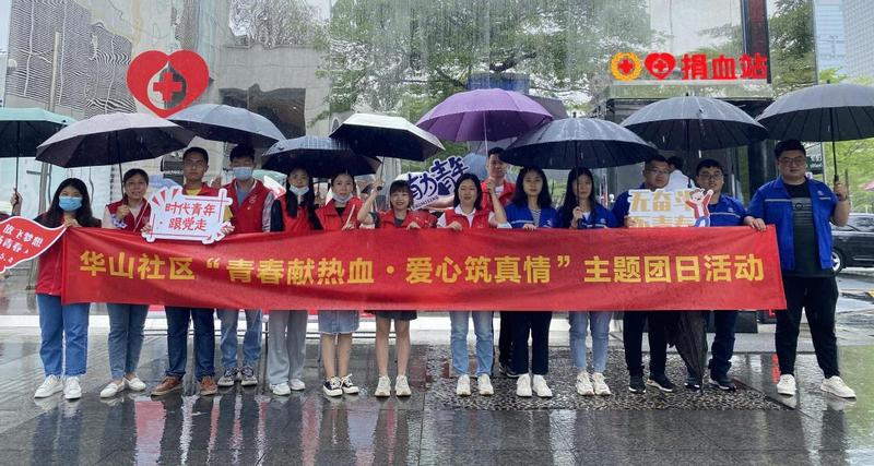 为爱举手,为生命加油。华山社区团委组织社区联合团支部、中铁十四局皇岗路项目部的团员青年来到中心书城捐血站,开展社区五四青年节系列活动之“青春献热血·爱心筑真情”主题团日活动。