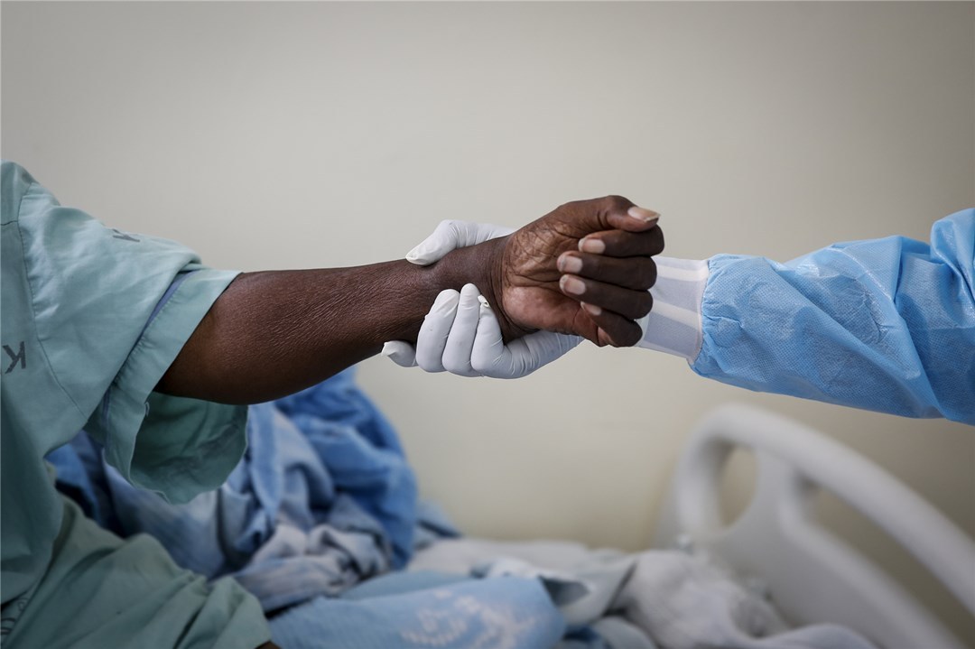 4月14日,肯尼亚内罗毕,新冠肺炎确诊患者在重症监护室接受治疗。(图自视觉中国)