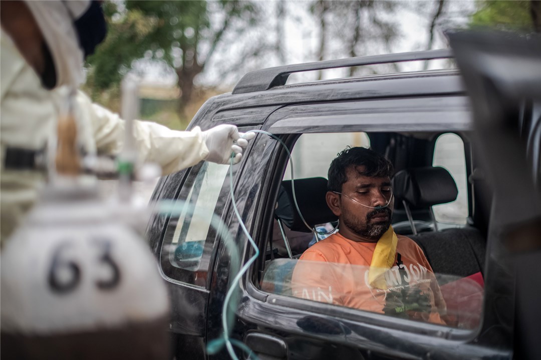 5月1日,印度新冠肺炎患者在吸氧。(图自视觉中国)