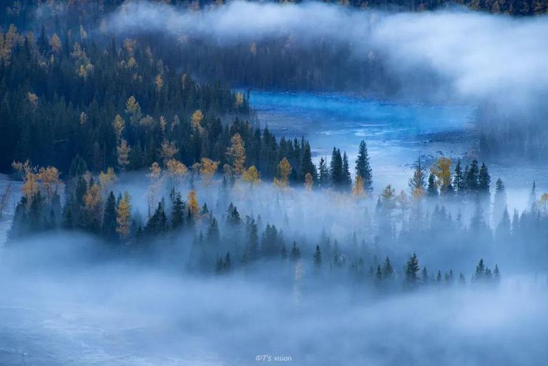 去喀纳斯,一定要去看一次“神仙3湾”,雾气朦胧了双眼,像是看不清的梦。