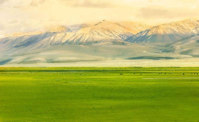 此时草黄马肥,水流静谧,天鹅起舞,雪峰花卉映衬,宛如童话世界。