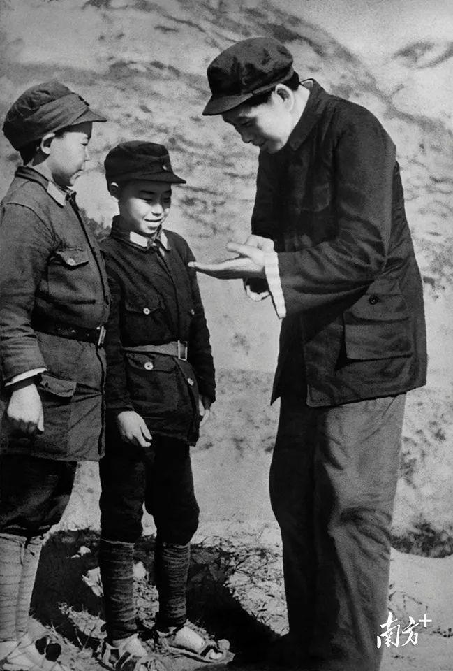 △1939年,毛泽东在延安和小八路谈话。石少华 摄